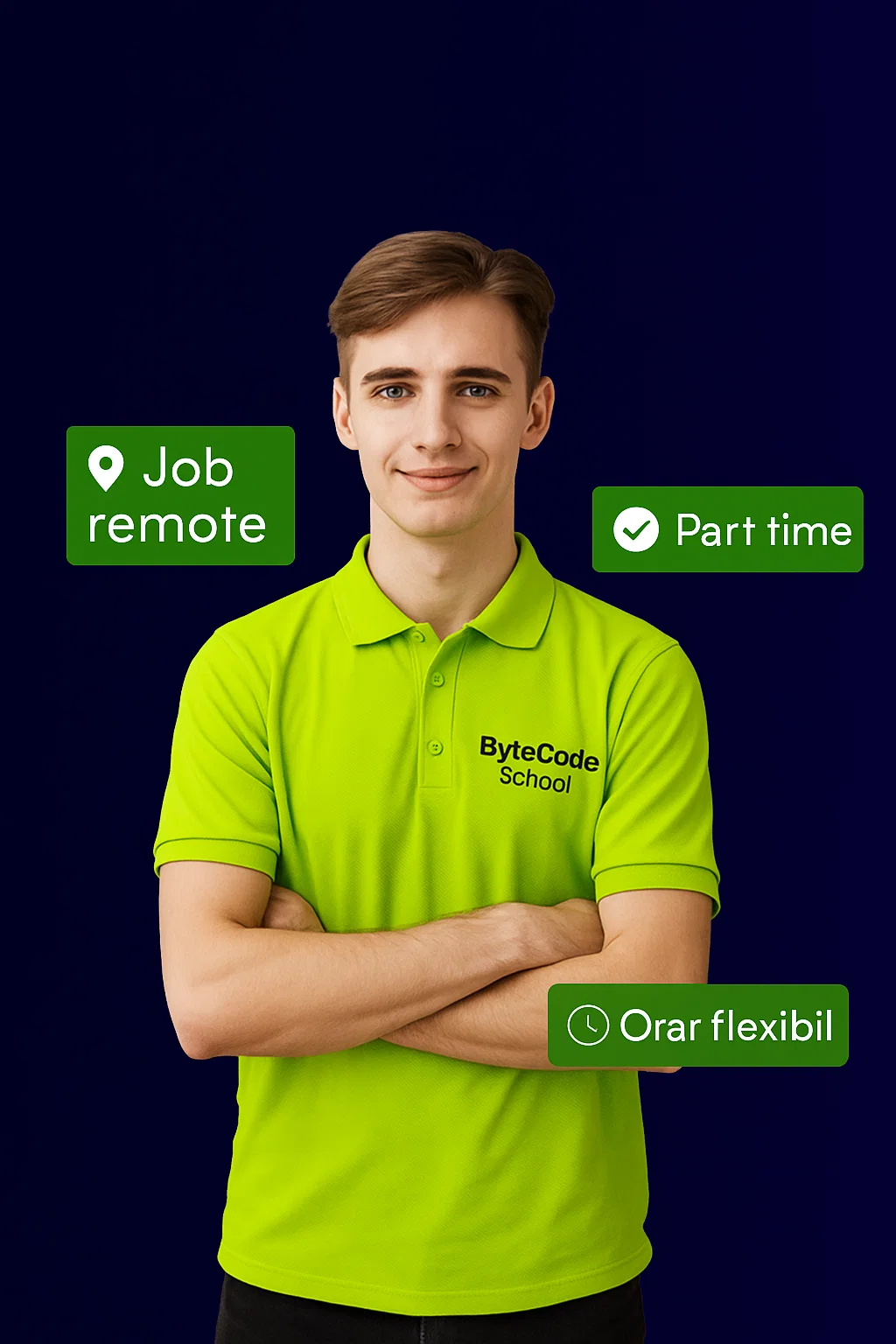 Complet flexibil! Tu alegi când vrei să lucrezi și câte ore pe săptămână. Îți facem programul în funcție de disponibilitatea ta, fie că vrei să lucrezi seara, weekend-ul sau în timpul liber din facultate.
